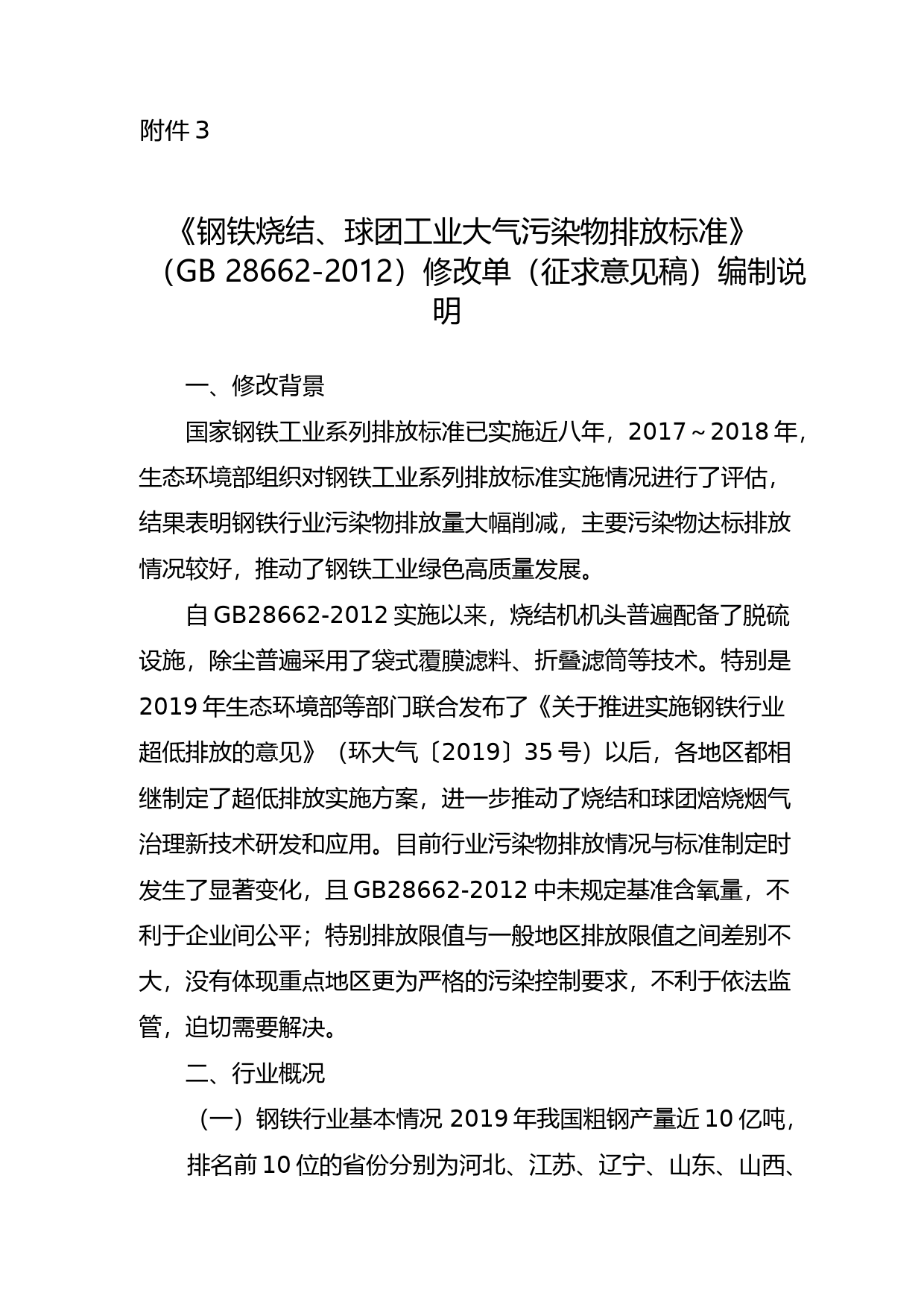 《钢铁烧结、球团工业大气污染物排放标准》(GB 28662-2012)修改单(征求意见稿)编制说明_第1页