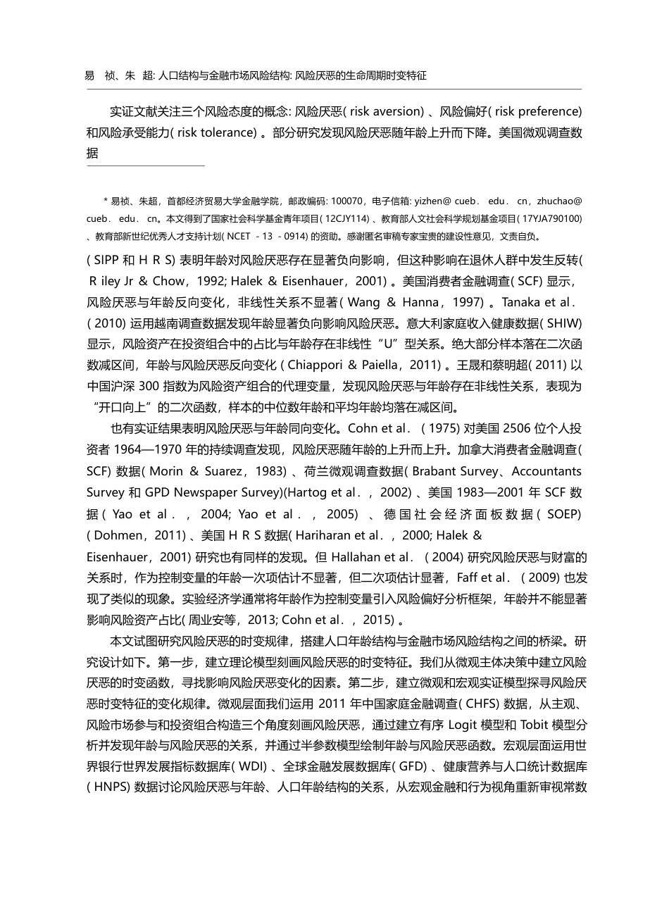 人口结构与金融市场风险结构...风险厌恶的生命周期时变特征_易祯_第2页