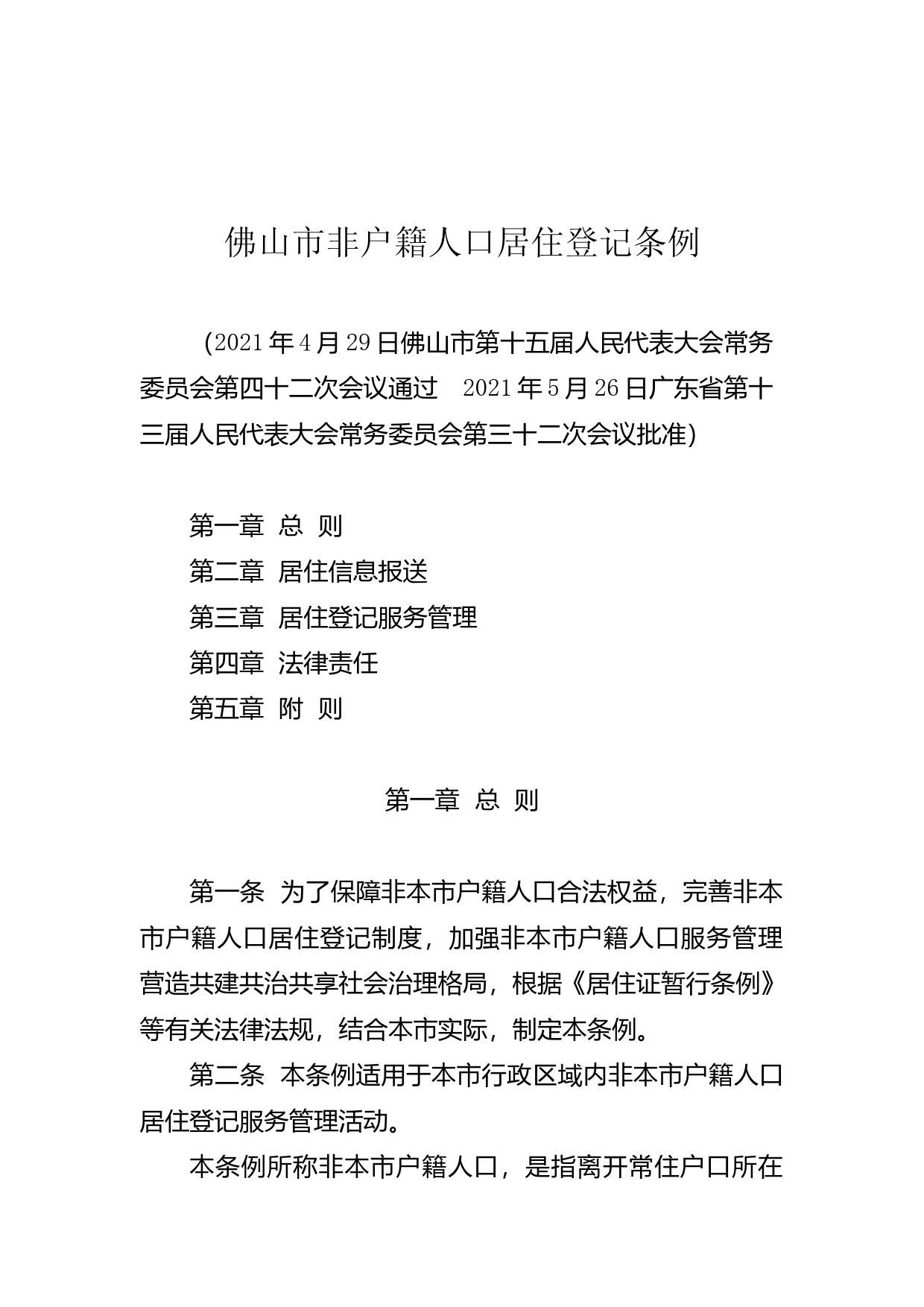 【地方性法规】 佛山市非户籍人口居住登记条例_第1页