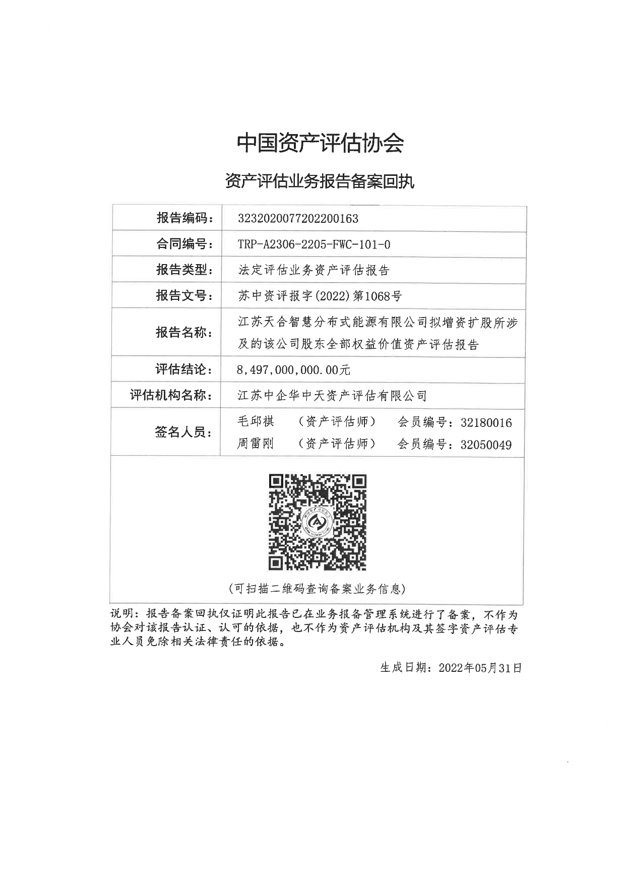 天合光能:江苏天合智慧分布式能源有限公司资产评估报告