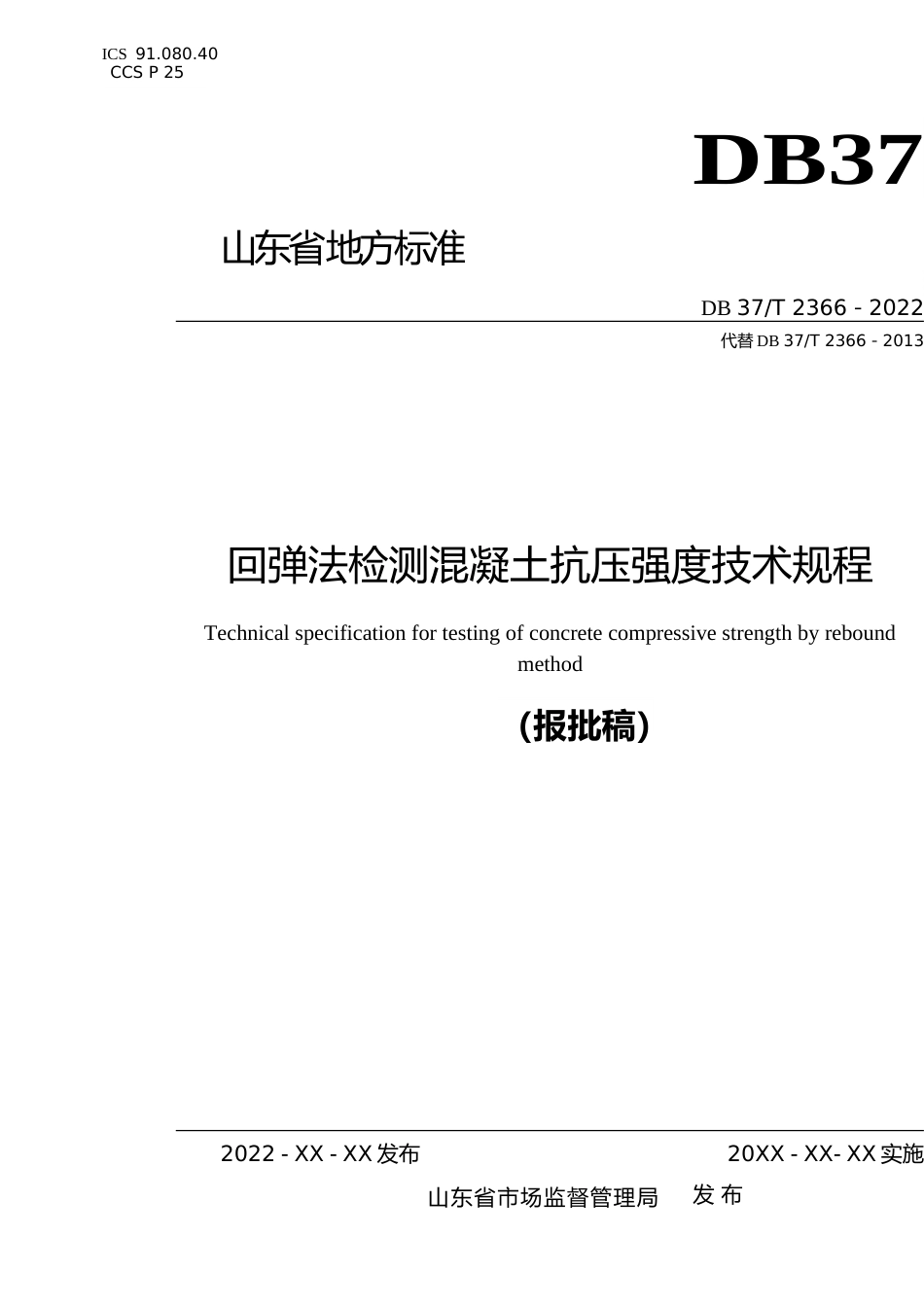 ICS91.080.40CCSP25DB37山东省地方标准DB37/T2366-2022代替DB37/T2366-2013回弹法检测混凝土抗压强度技术规程Technicalspecificationfortestingofconcretecompressivestrengthbyreboundmethod(报批稿)2022-XX...