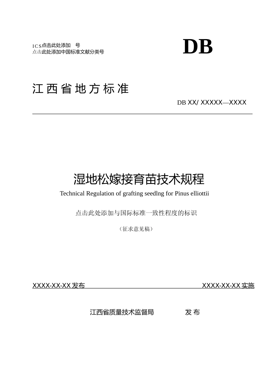 ICS点击点击此处添加此处添加中国号标准文献分类号DB江西省地方标准DBXX/XXXXX—XXXX湿地松嫁接育苗技术规程TechnicalRegulationofgraftingseedlngforPinuselliottii点击此处添加与国际标准一致性程度的标识(征...