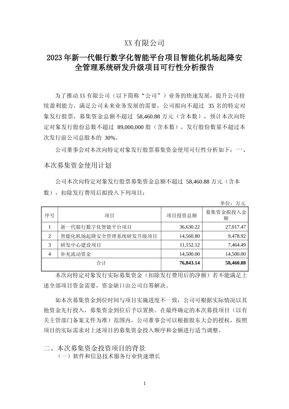 XX有限公司2023年新一代银行数字化智能平台项目智能化机场起降安全管理系统研发升级项目可行性分析报告为了推动XX有限公司(以下简称“公司”)业务的快速发展,提升公司持续盈利能力,满足公司未来业务发展的需...