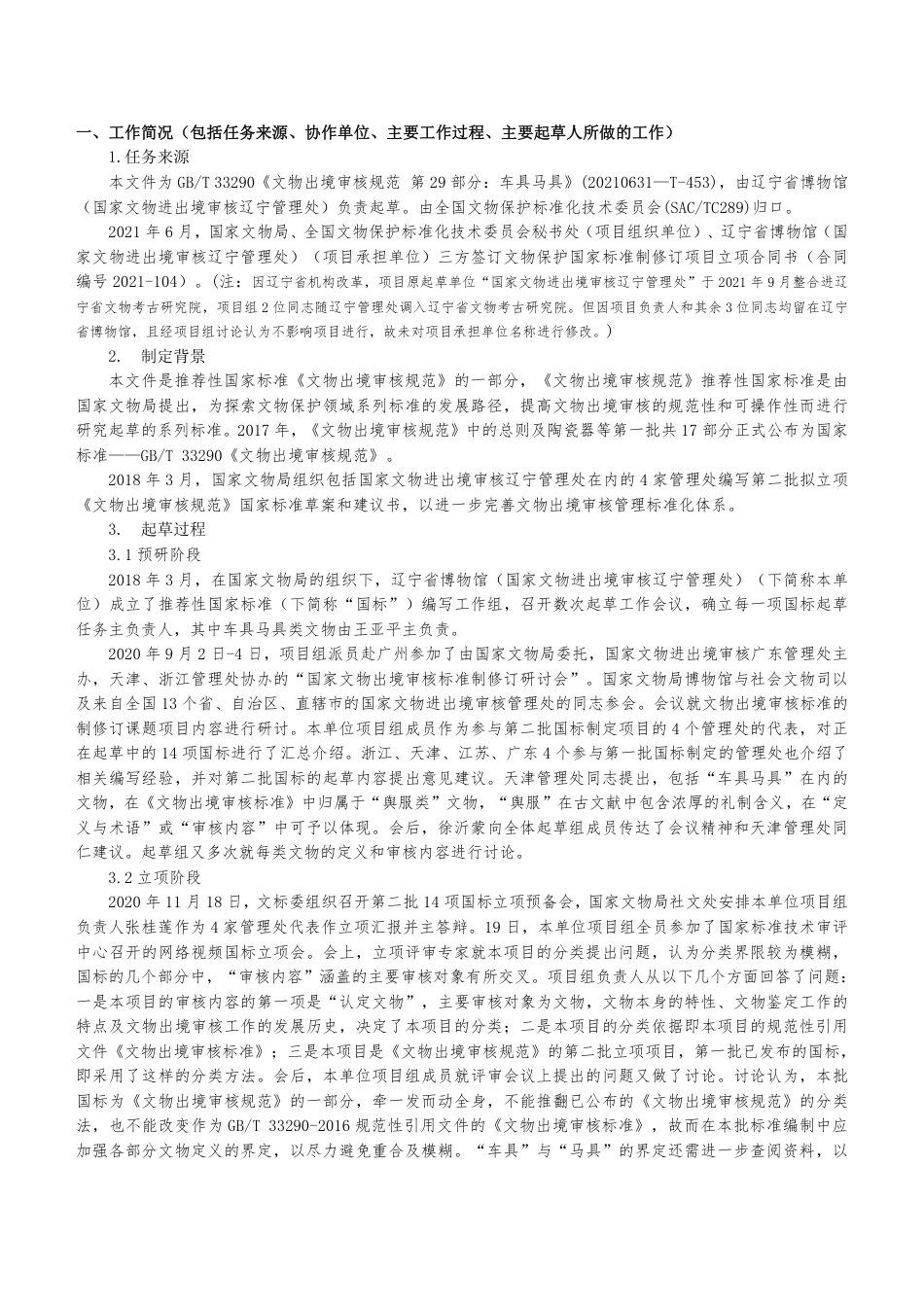 [国家标准] 文物出境审核规范 第29部分:车具马具_编制说明