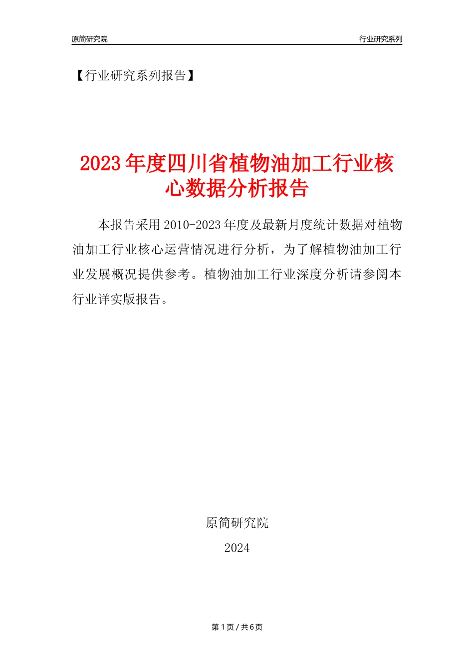 【植物油年报】2023年度四川省植物油加工行业核心数据分析报告_第1页