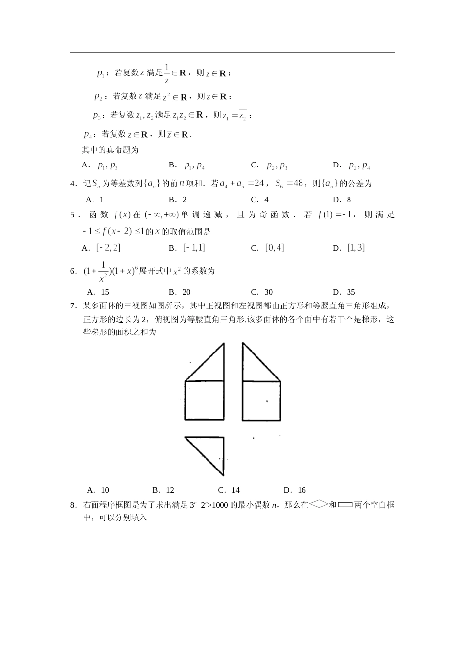 [高考真题]2017年湖南高考理科数学试题及答案_第2页