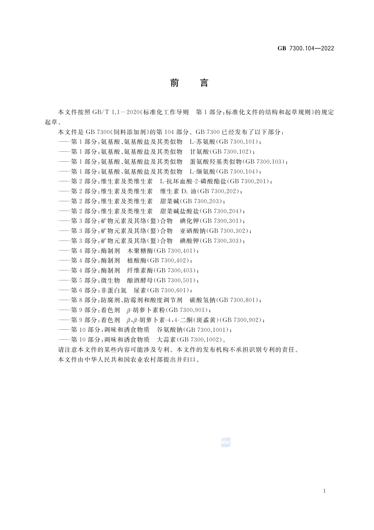 GB+7300.104-2022饲料添加剂 第1部分:氨基酸、氨基酸盐及其类似物 L-缬氨酸_第1页